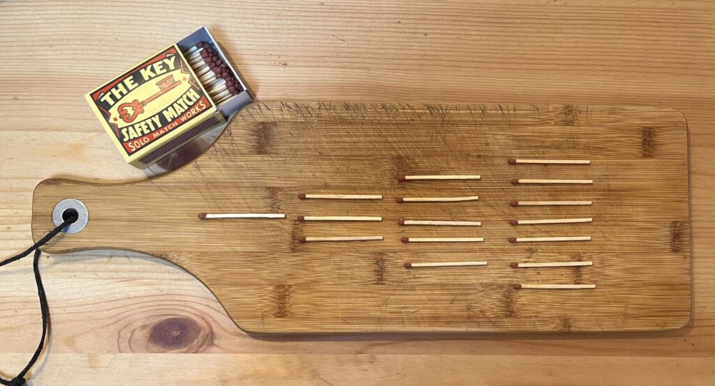 (Je možné začít s libovolným počtem hromádek s libovolnými počty sirek v nich. Pro začátek je ale rozložení 1-3-5-7 parádní.)